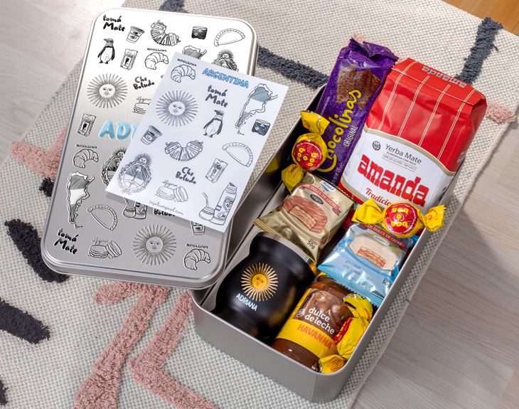 Usando una cesta de mimbre como base, en ella encontrarás productos riquísimos: bollería artesanal, tostadas, zumos ecológicos... Además, muchas otras cosas que podrás conservar como recuerdo, como un termo o una taza personalizada.